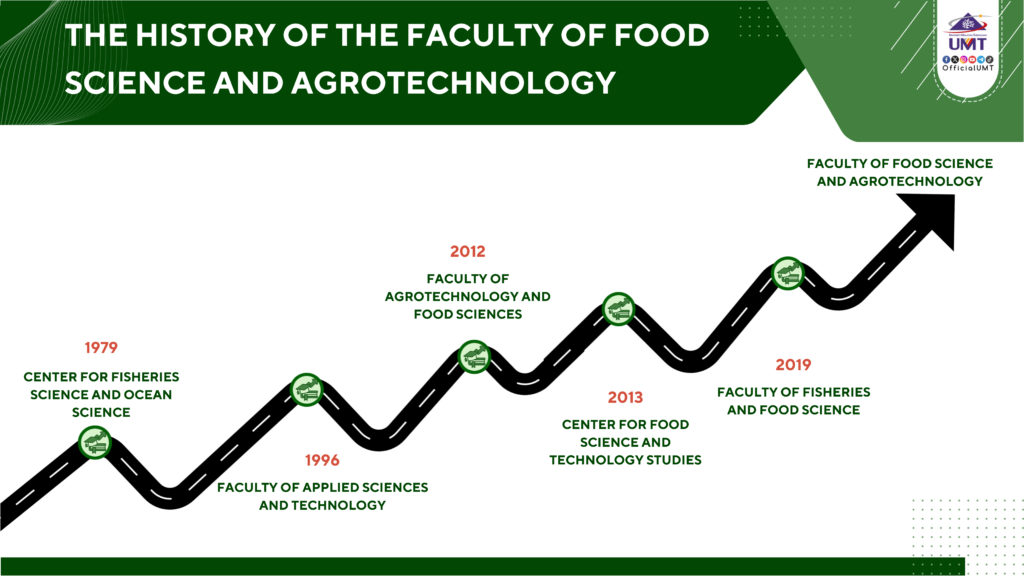 2012: Further changes transpired as it transformed into the Fakulti Agroteknologi dan Sains Makanan (Faculty of Agrotechnology and Food Sciences, FASM) at Universiti Malaysia Terengganu (UMT).